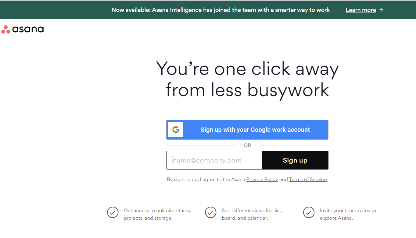 Primul pas pe care trebuie să-l faci este să deschizi site-ul oficial Asana.