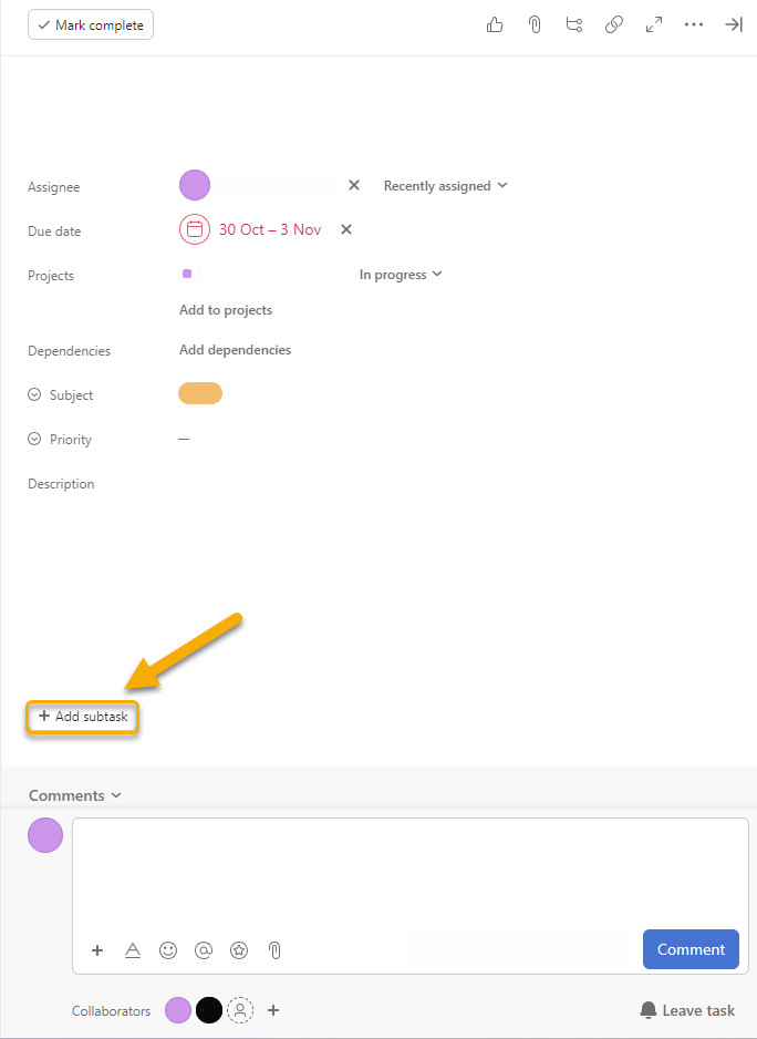 În cazul în care o dată scadentă trebuie schimbată, cel mai bine este să lași un comentariu la sarcina respectivă și să menționați persoana responsabilă “@numepersonăresponsabilă” în care să anunți că data a fost amânată.
